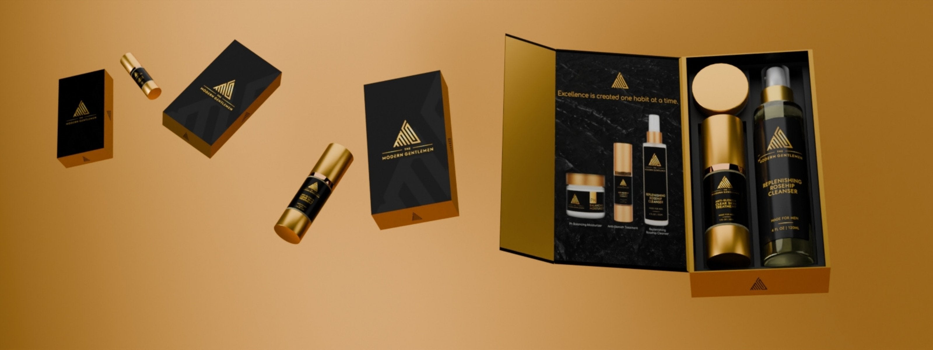 The Modern Gentleman’s Daily Essentials Kit is a complete men’s skincare set designed for a simple 3-step routine. Featuring a gentle rose-hip oil cleanser, targeted anti-blemish serum, and lightweight pH-balancing moisturizer, this kit removes impurities, calms breakouts, and locks in hydration while controlling oil. Formulated with antioxidant-rich rosehip, salicylic acid, and skin-identical ceramides, it restores your skin’s natural balance, refines texture, and delivers a clear, matte complexion. Perfect for men seeking an effective daily grooming solution—shop now to elevate your skincare regimen.